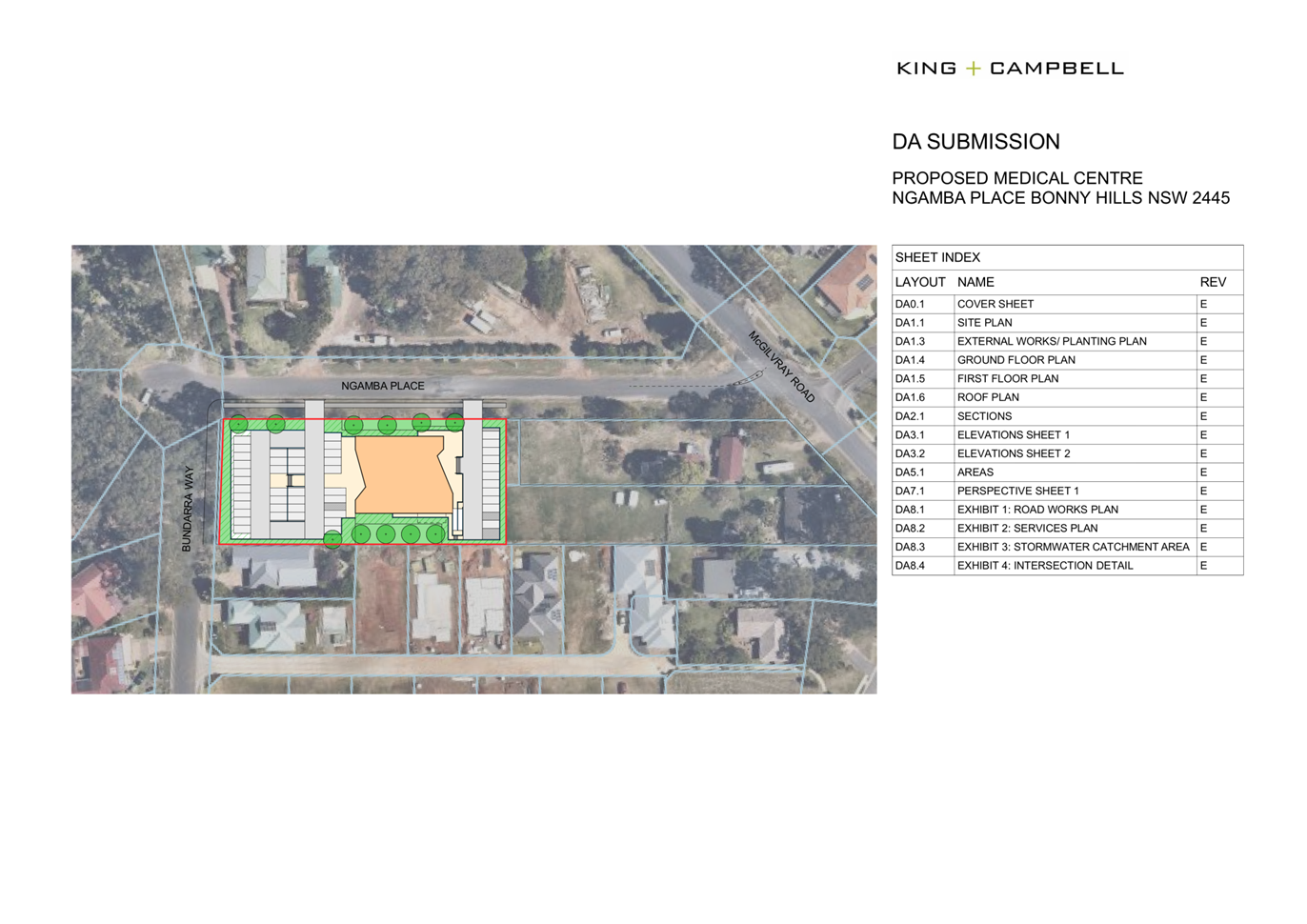 The proposed development site is located at 11 Ngamba Place, Bonny Hills, on the corner of Bundarra way. There is an existing 20mm metered water service from the 100mm water mains on the same side of Ngamba Place. An application shall be made to Council to disconnect this service. Minimum 25mm water services are to be provided for Commercial developments and include an RPZ.