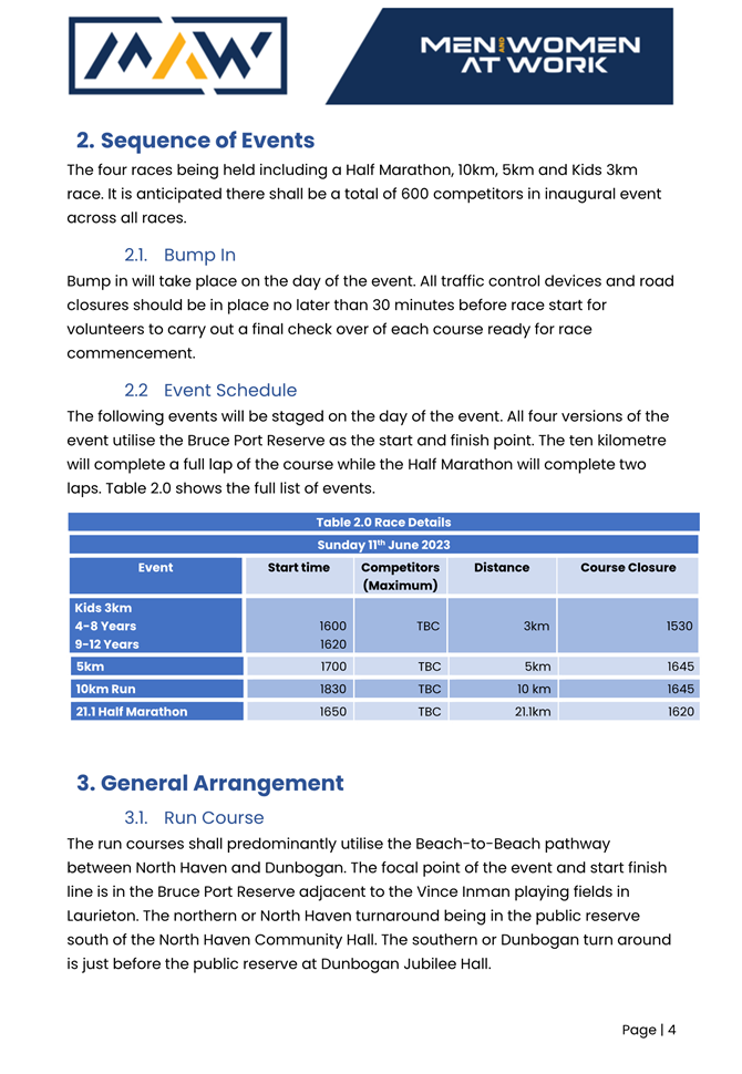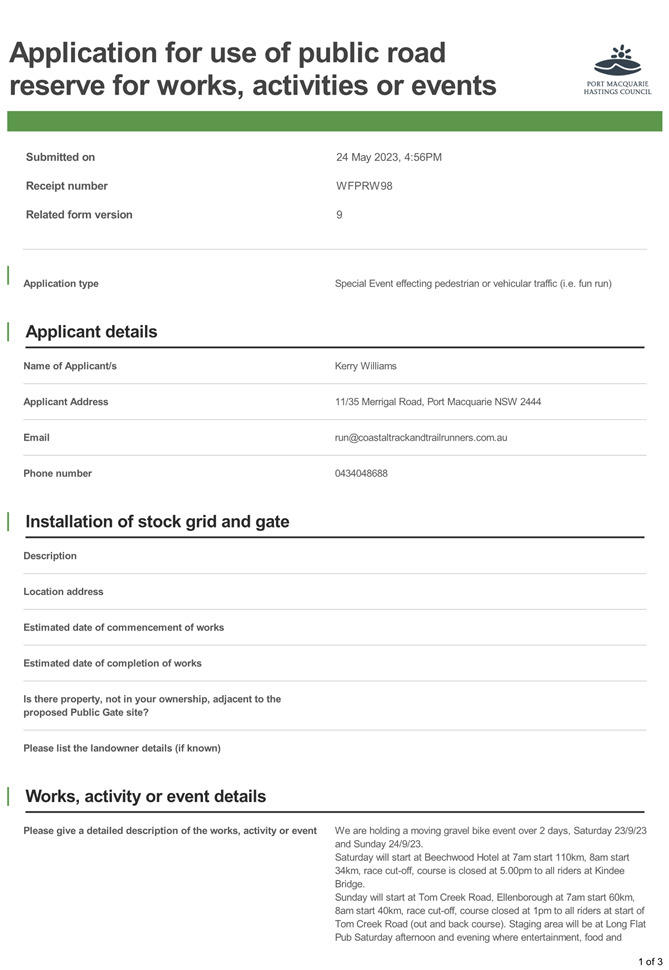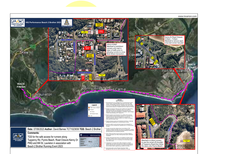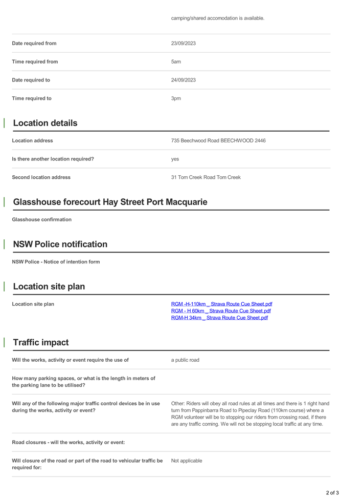 The runner will enter the PMHC LGA on Tuesday, 26 September 2023 travelling through to Lake Cathie and complete the run to Taree on Wednesday, 27 September 2023. It is anticipated the event will be undertaken between 6:30am and 4:30pm both days.