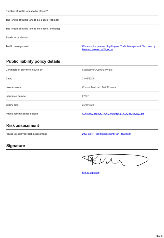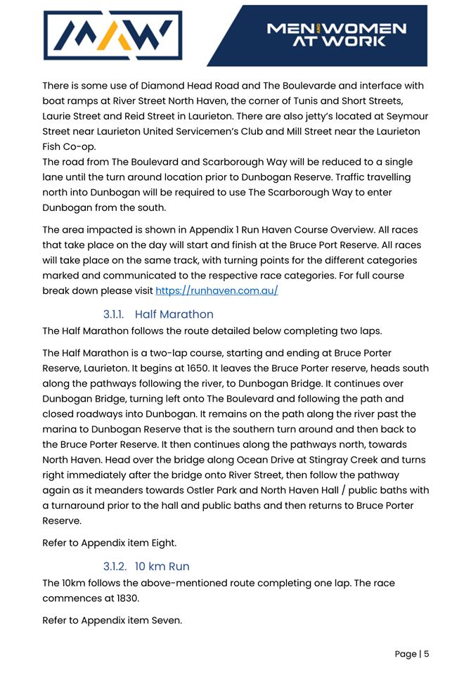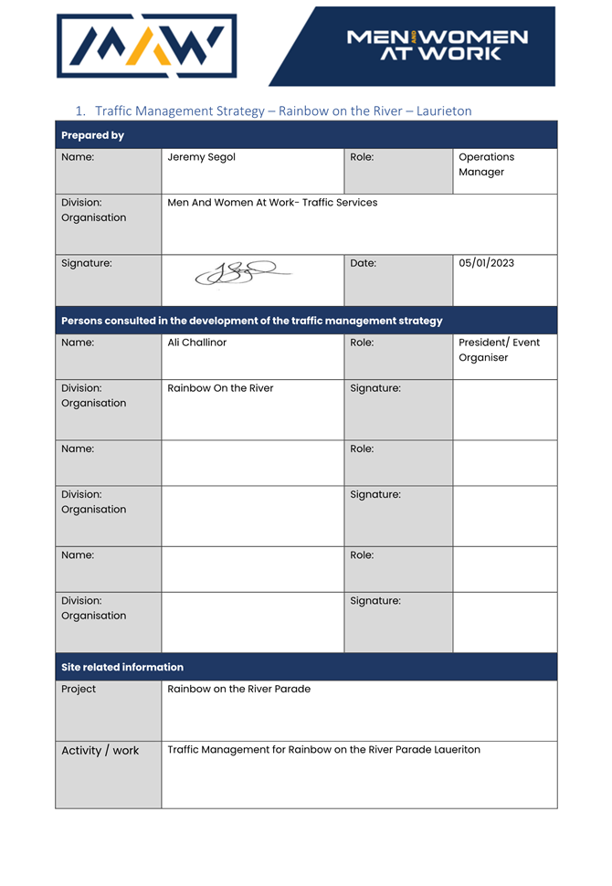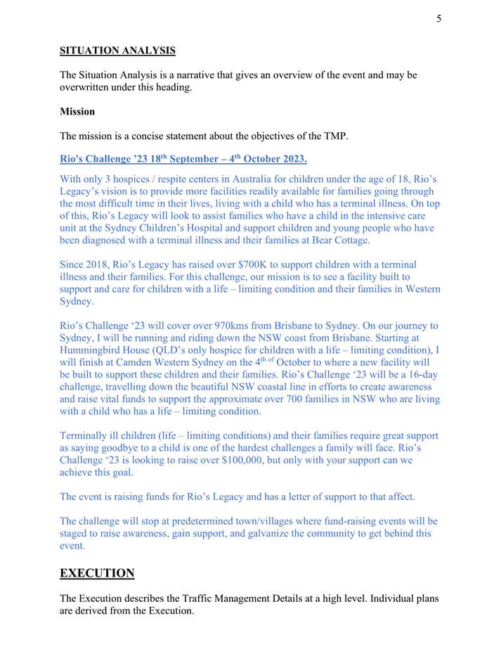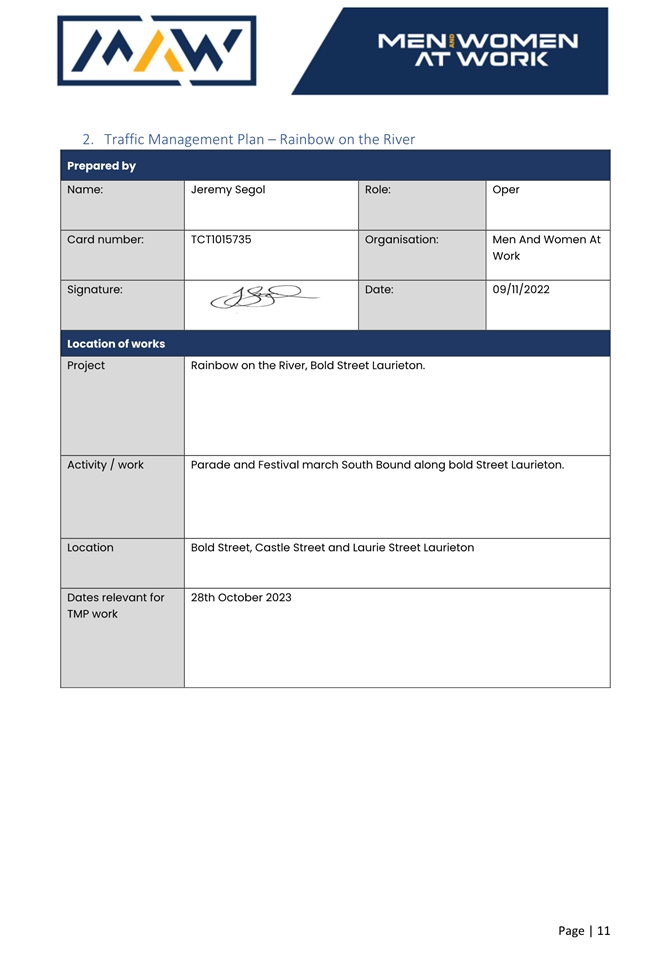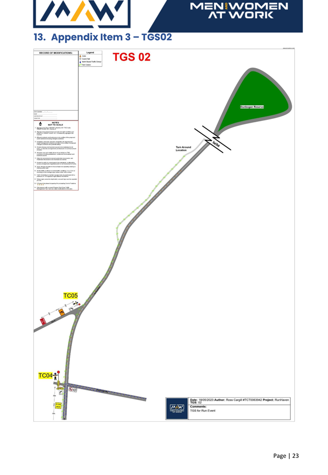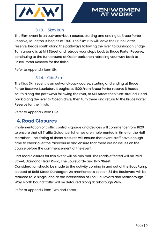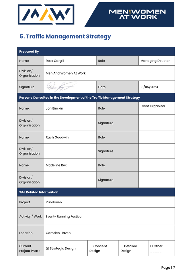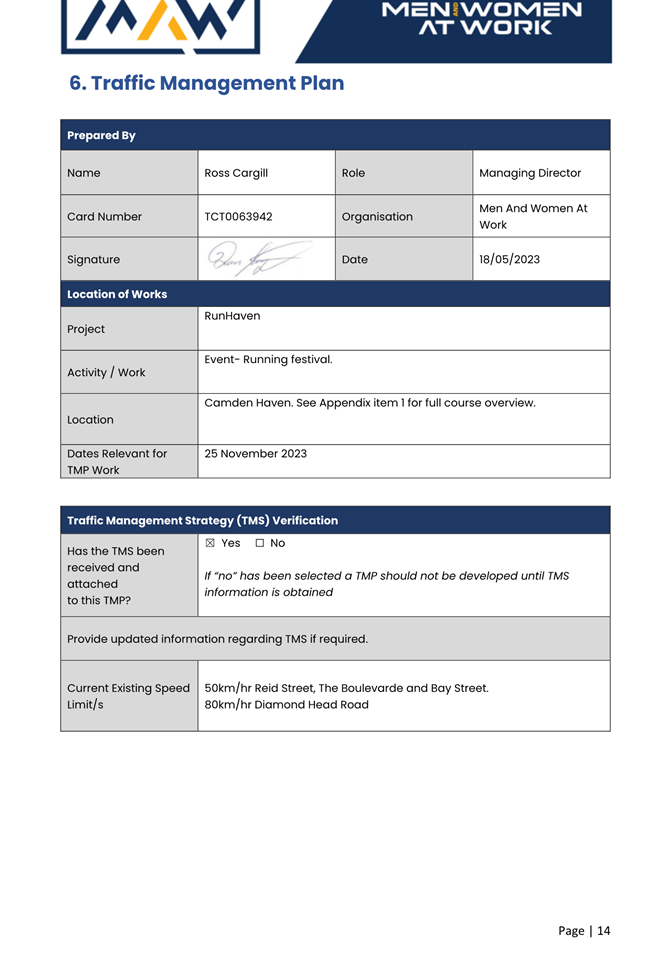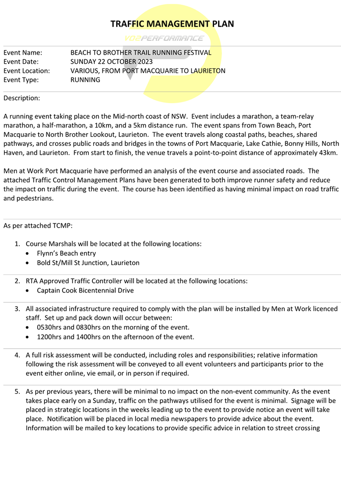 5. The event organiser must have this approval and the Transport Management Plan and Traffic Guidance Scheme described above on site at all times for the duration of the event.
