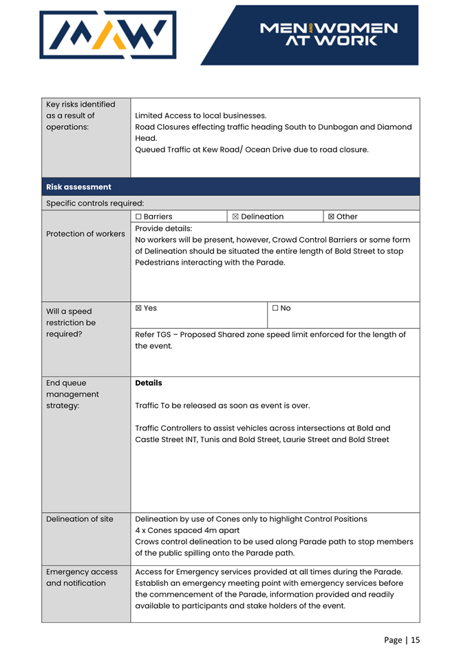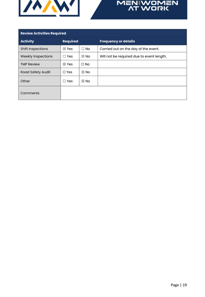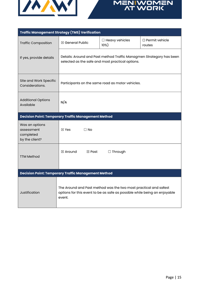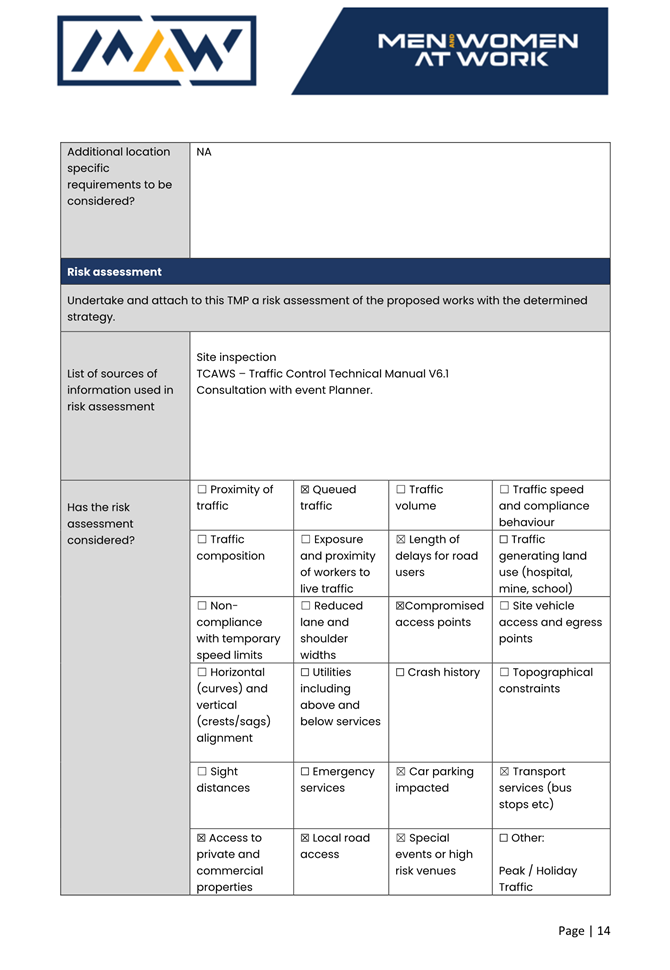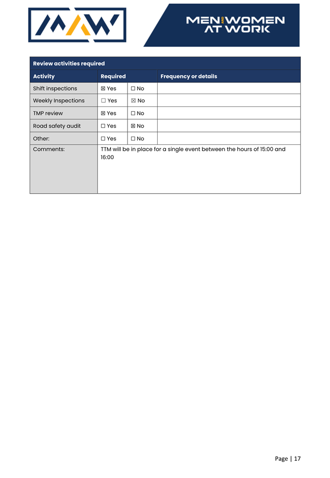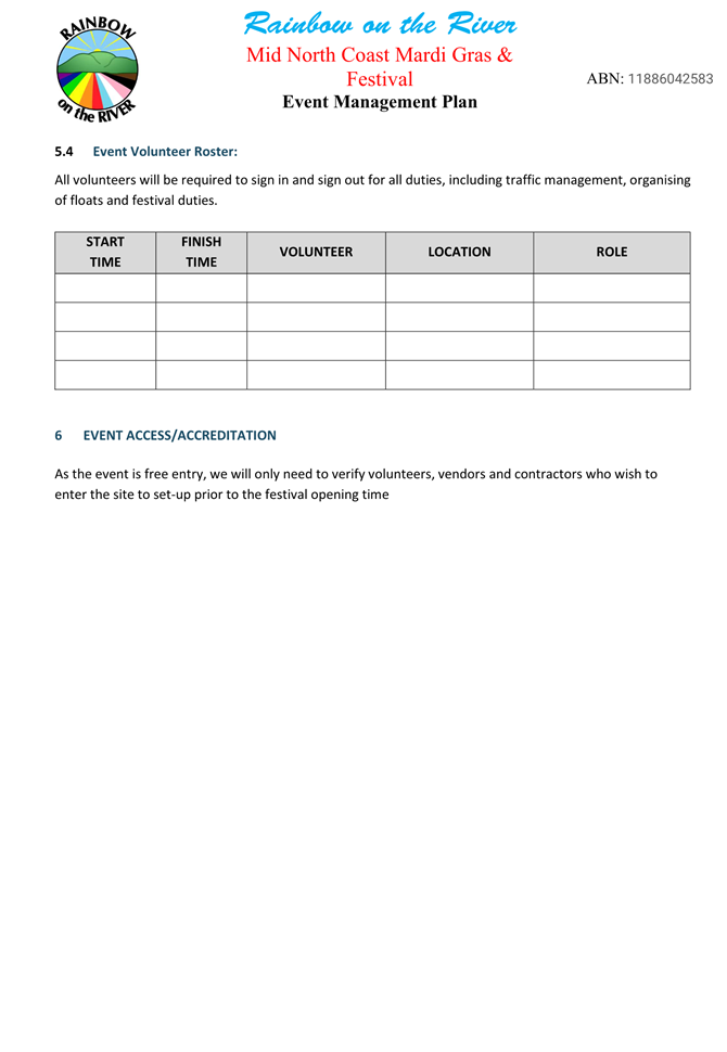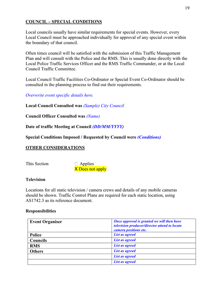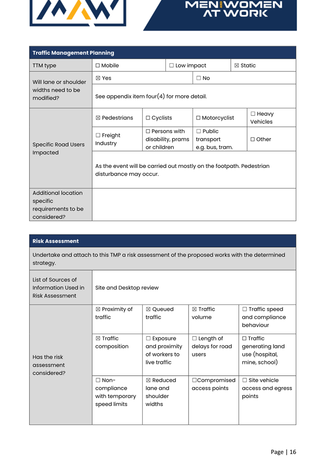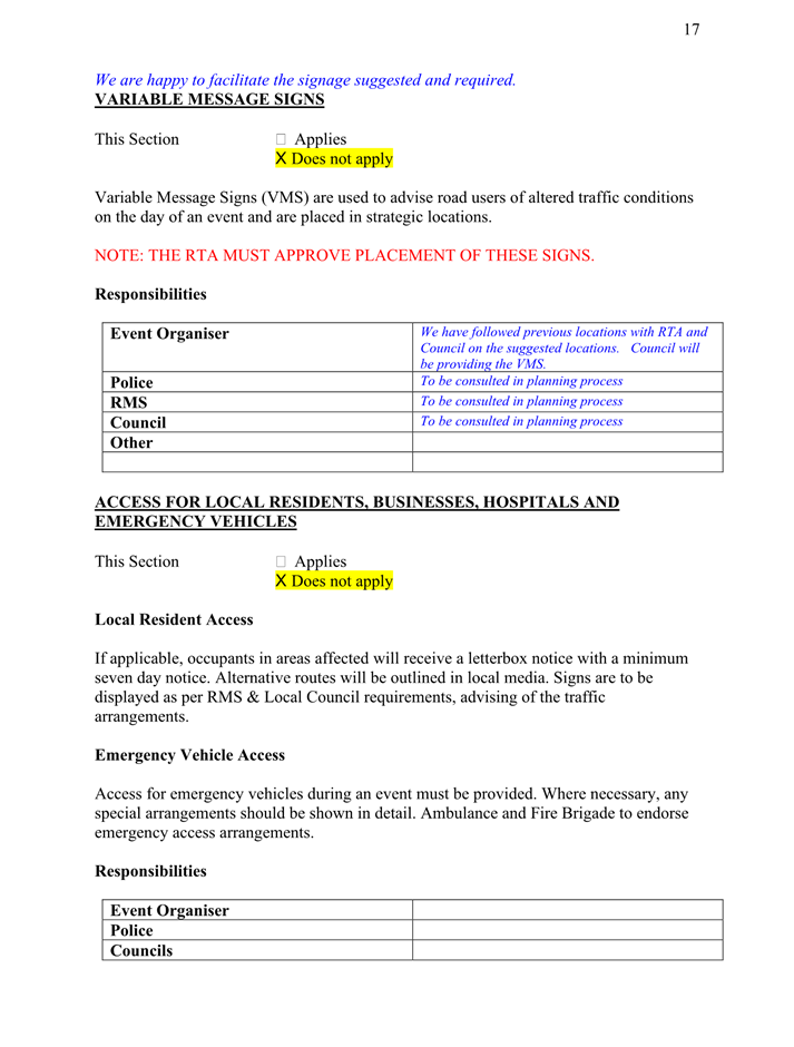 5. The event organiser must have this approval and the Transport Management Plan and Traffic Guidance Scheme described above on site at all times for the duration of the event.