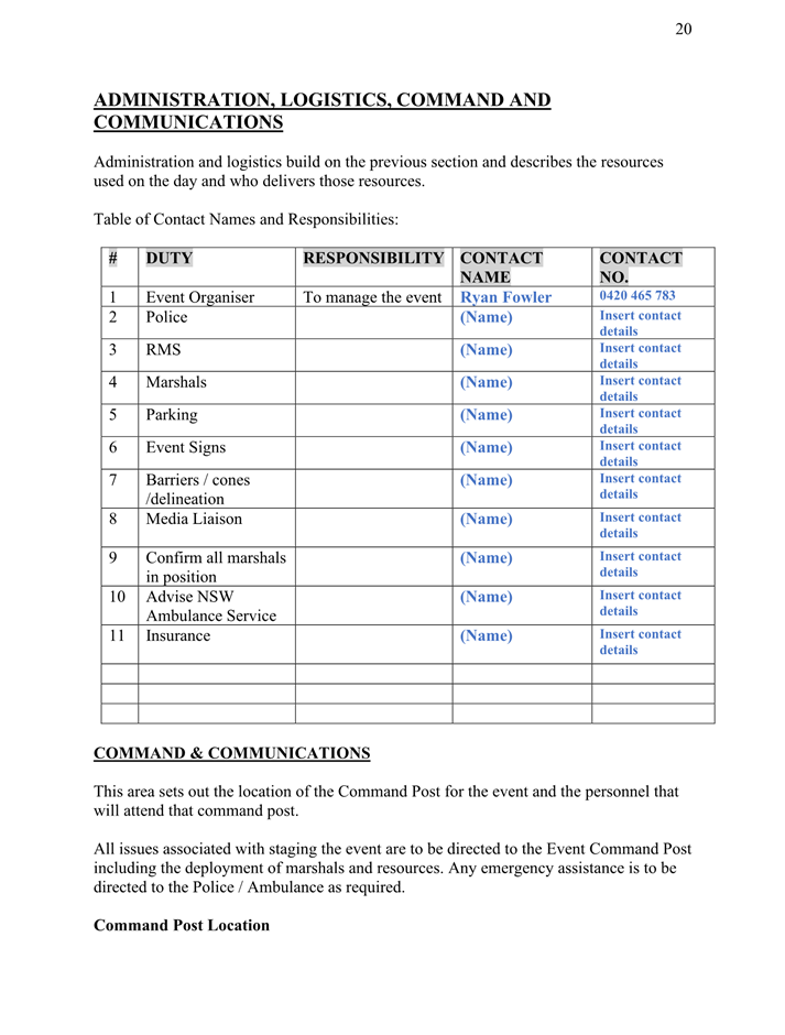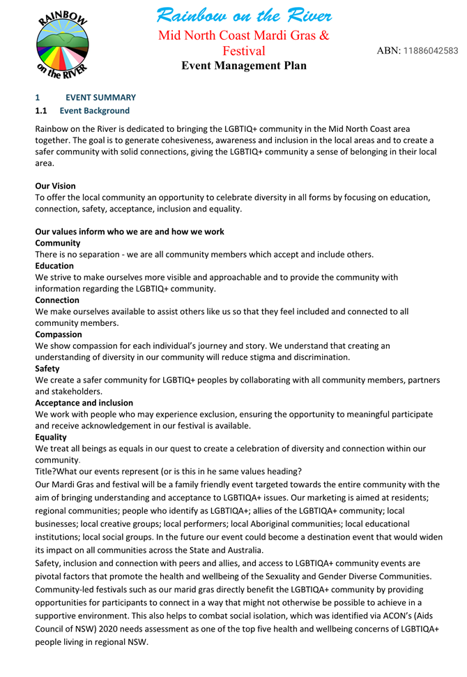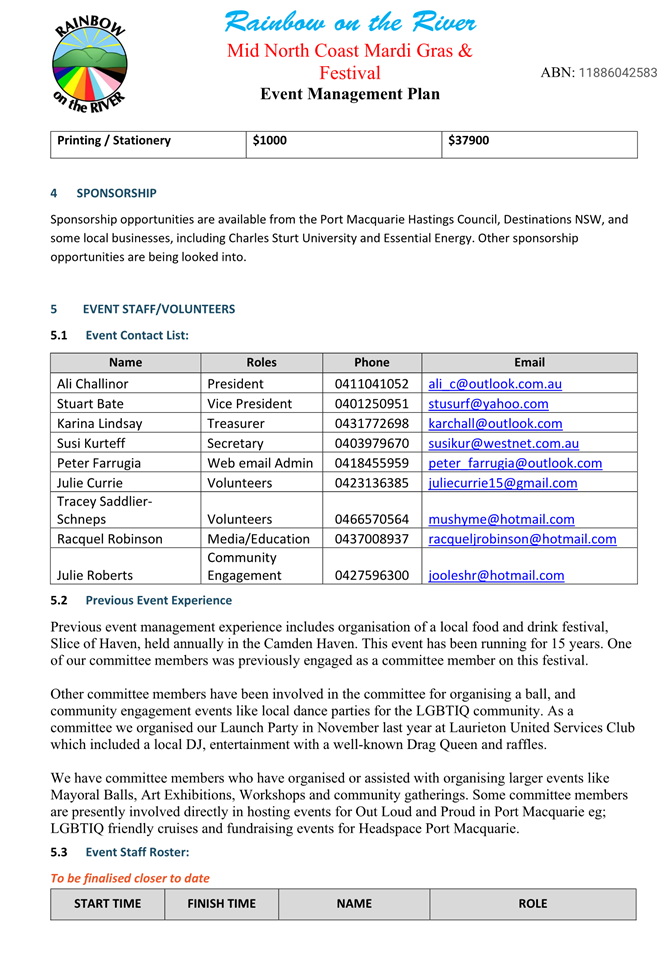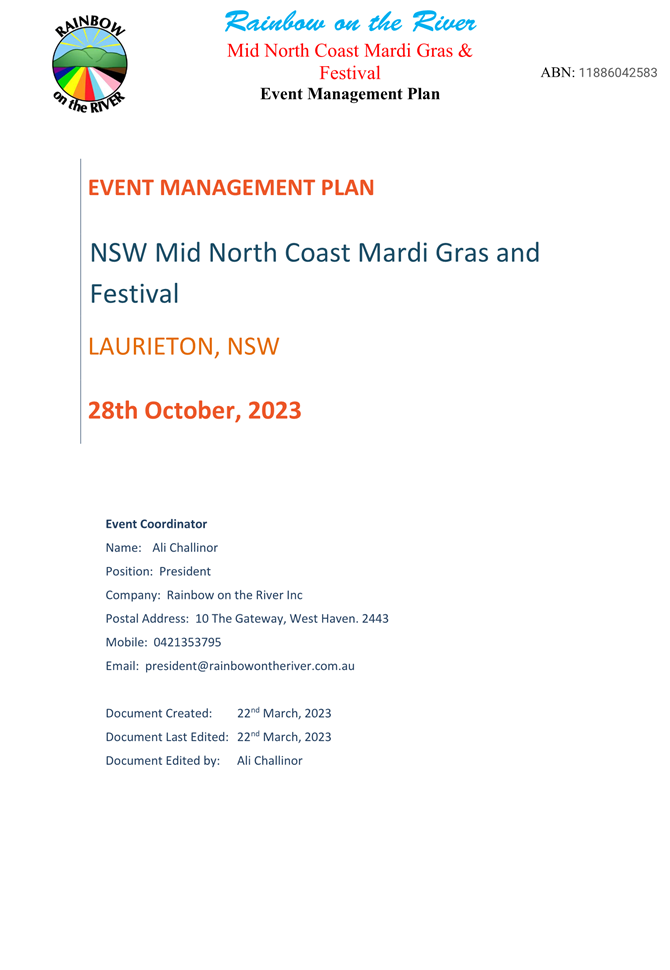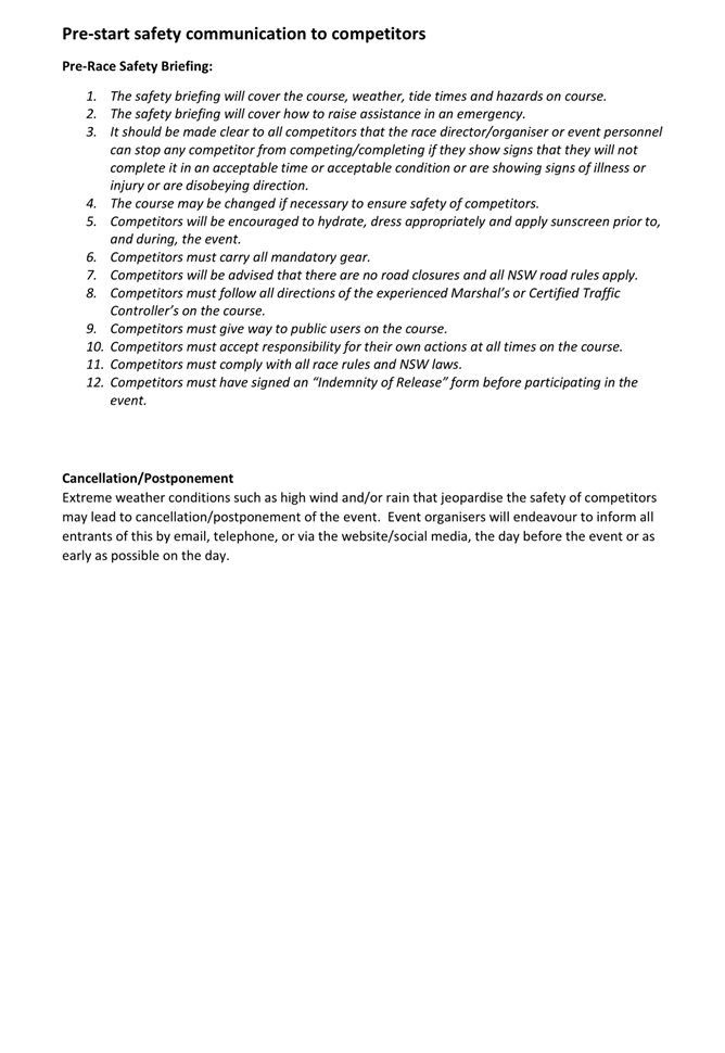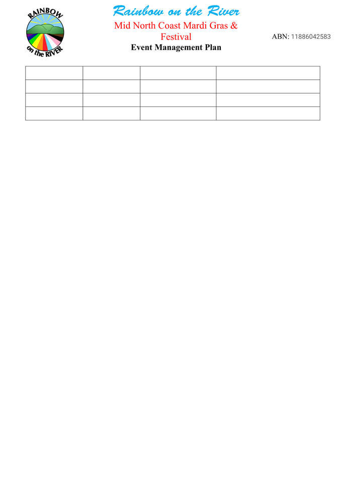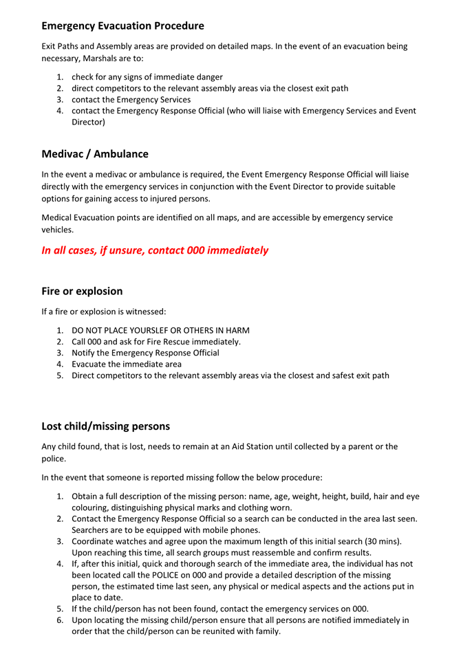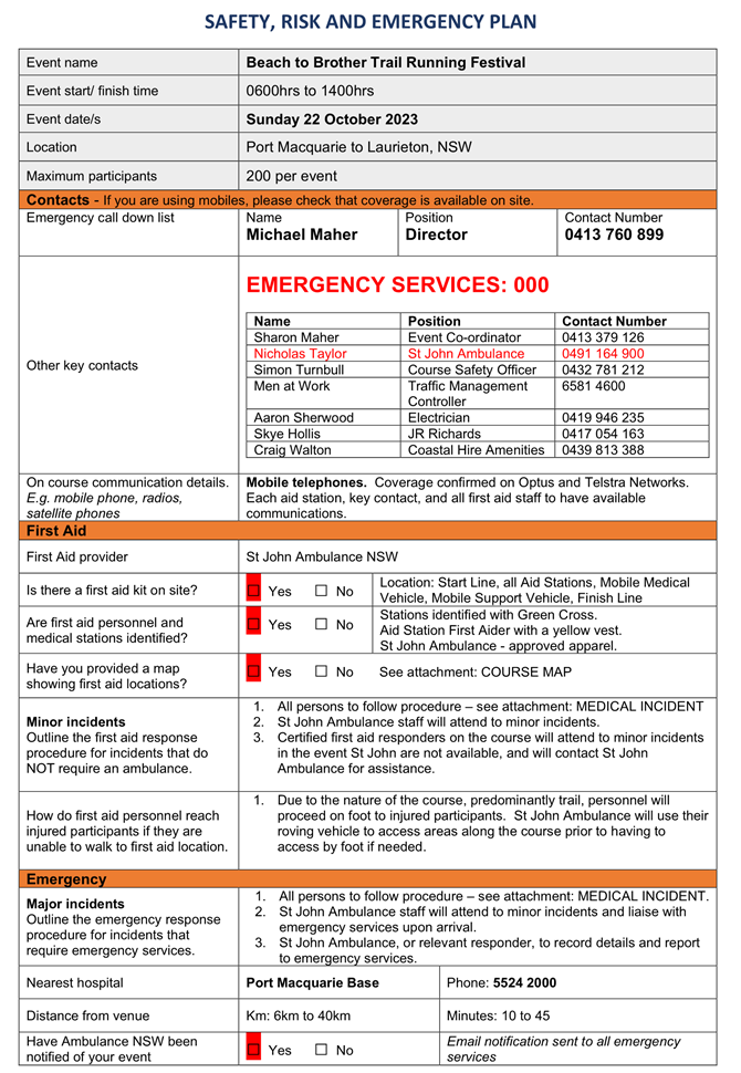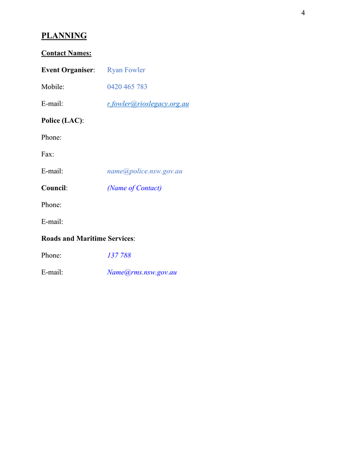 4. That the event organiser notifies the NSW Ambulance, NSW Fire & Rescue, NSW Rural Fire Service and the State Emergency Service of the proposed event at least 28 days in advance of the event.