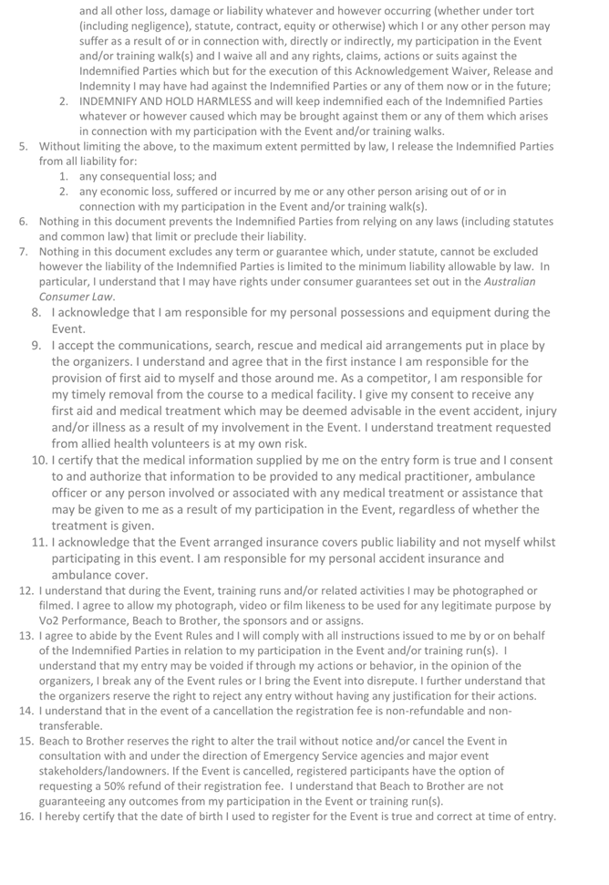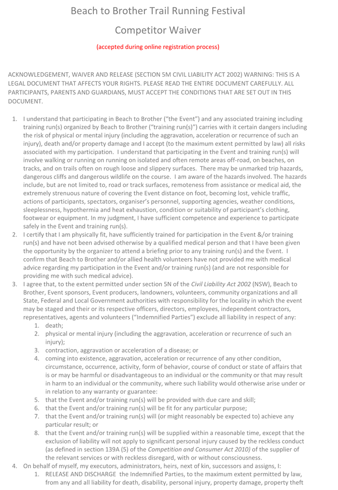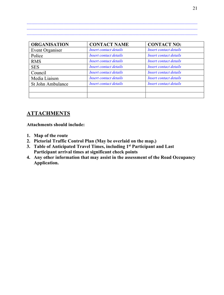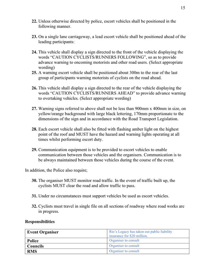 4. That the event organiser submits to Council 28 days prior to the commencement of the event evidence of Public Liability Insurance for the amount of $20 million, which is valid for the duration of the event, including placement and removal of any traffic control devices.