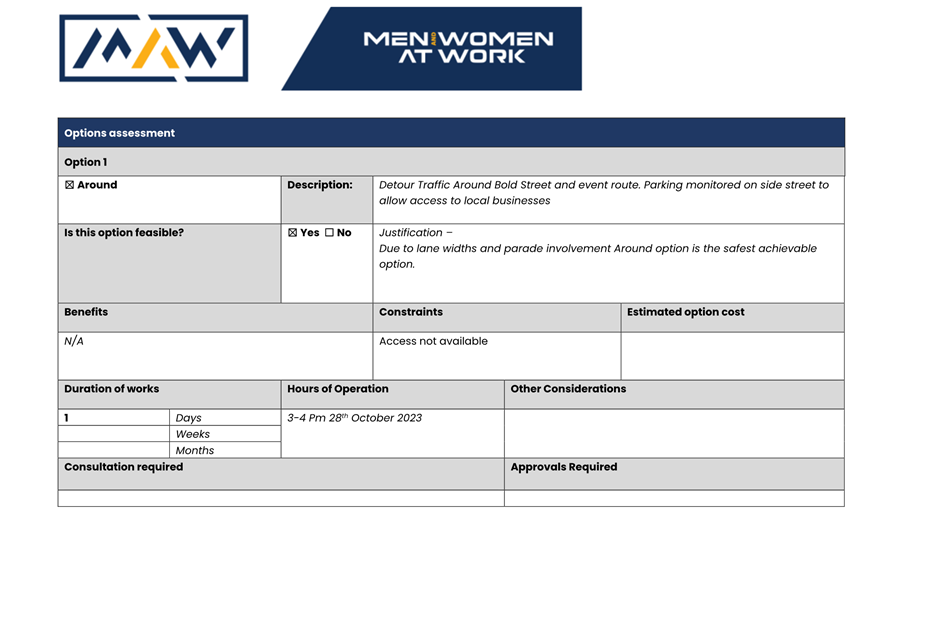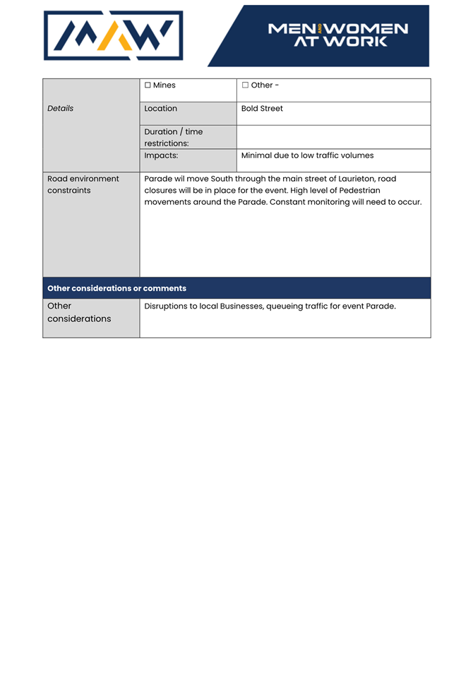 · proposed actions to be undertaken to mitigate the impact of the temporary road closure.