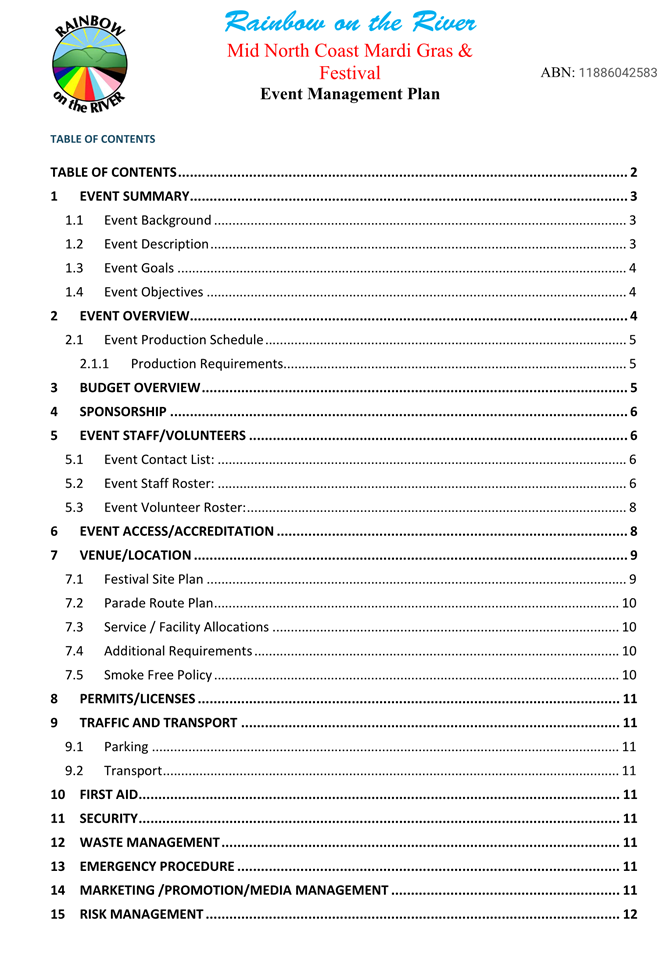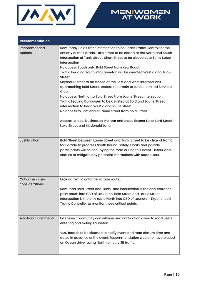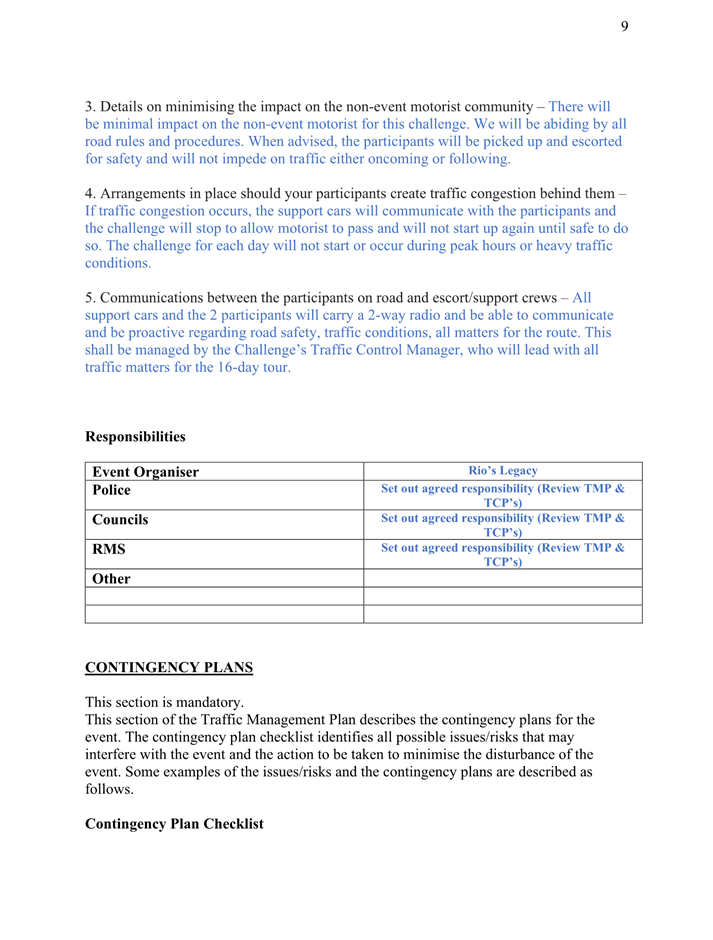 9. That a review of the implementation of the Transport Management Plan be undertaken by the proponent within three months of the conclusion of the event. The review is to be in consultation with Council and other services so that the TMP can be further refined and any issues identified can be addressed prior to any future events