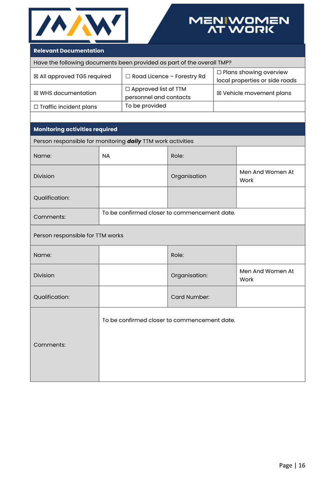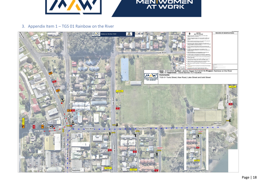 6. TfNSW/SafeWork NSW accredited persons (Implement Traffic Control Plans) are to be used for the establishment and removal of the traffic control devices.