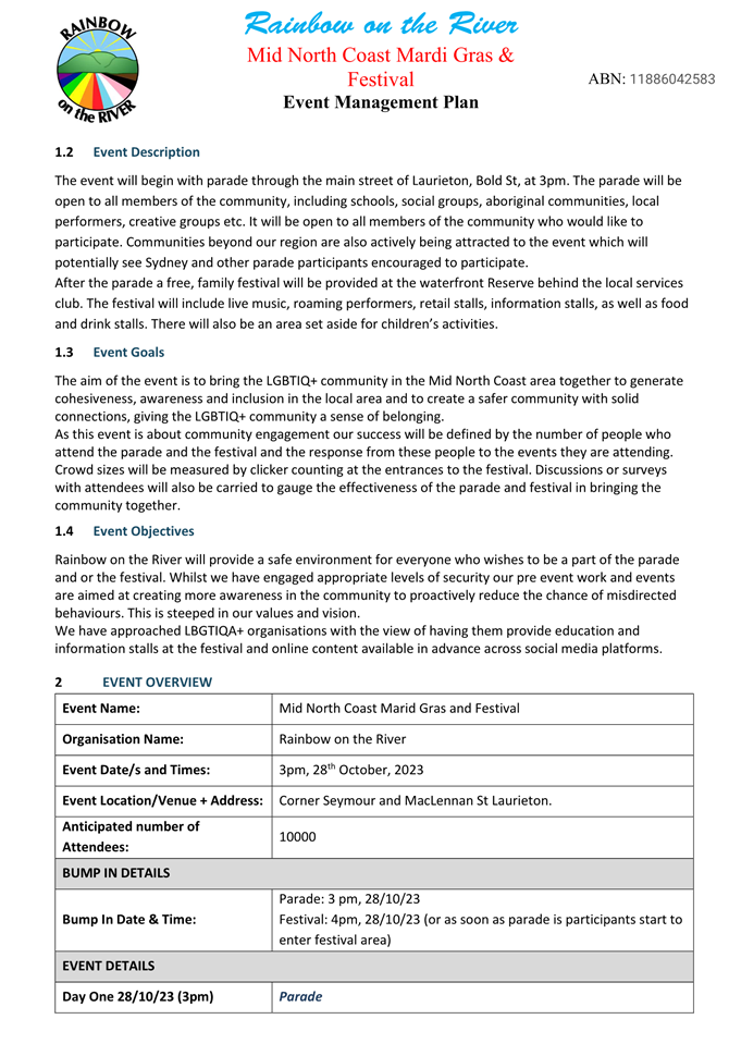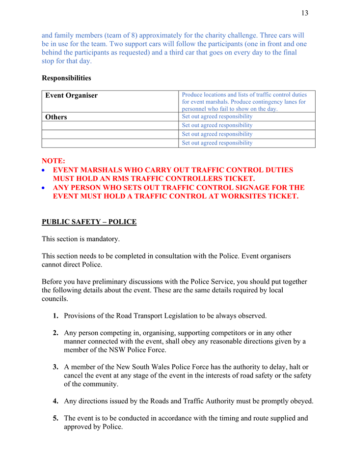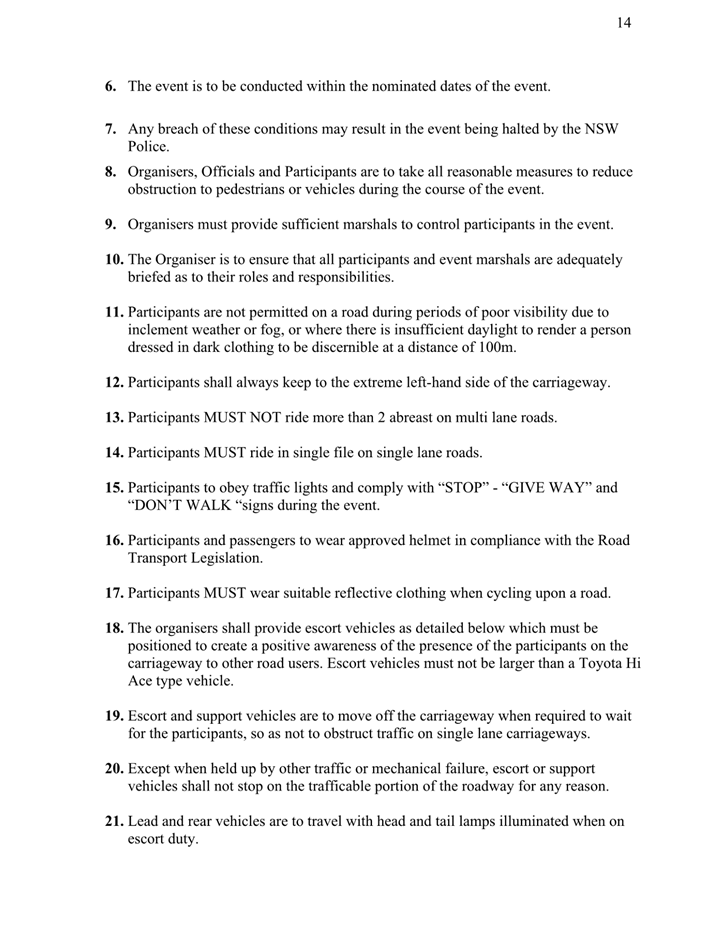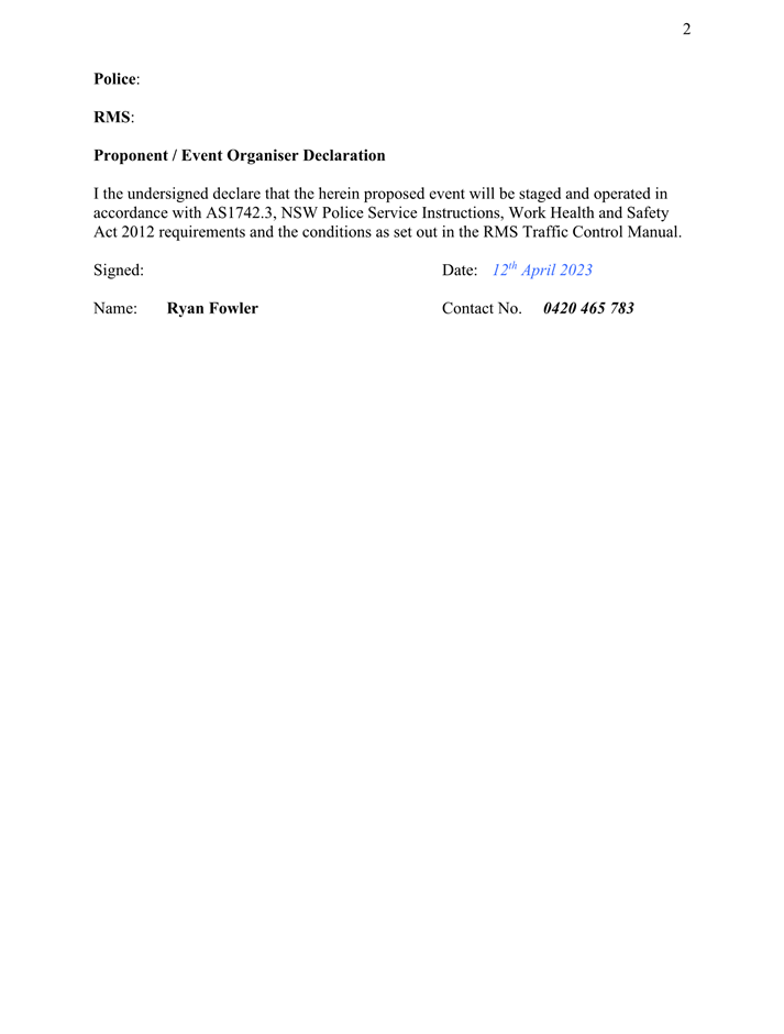 2. That the event organiser abides by the written approval from the NSW Police.